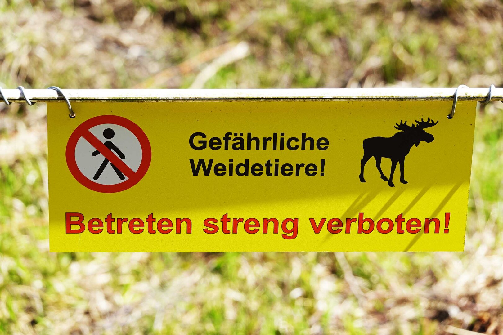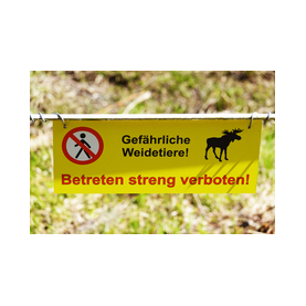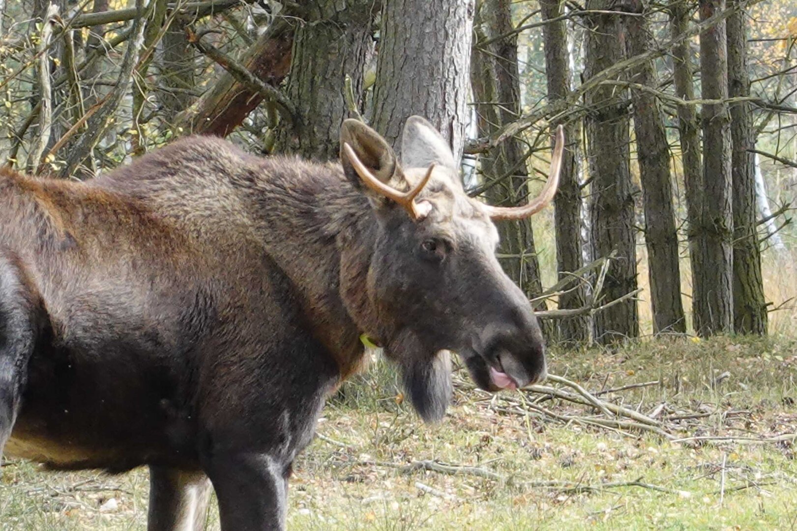 Aktuell leben in dem zusätzlich mit Wildzaun eingezäunten Teilbereich des Geheges 2 junge Elchbullen (geboren im Mai 2023). Sie sind ausschließlich zur Landschaftspflege hier. Achtung! Elche können bei Annäherung sehr gefährlich sein. Ein Betreten des Geheges ist daher streng verboten! Auch in Zaunnähe besondere Vorsicht!